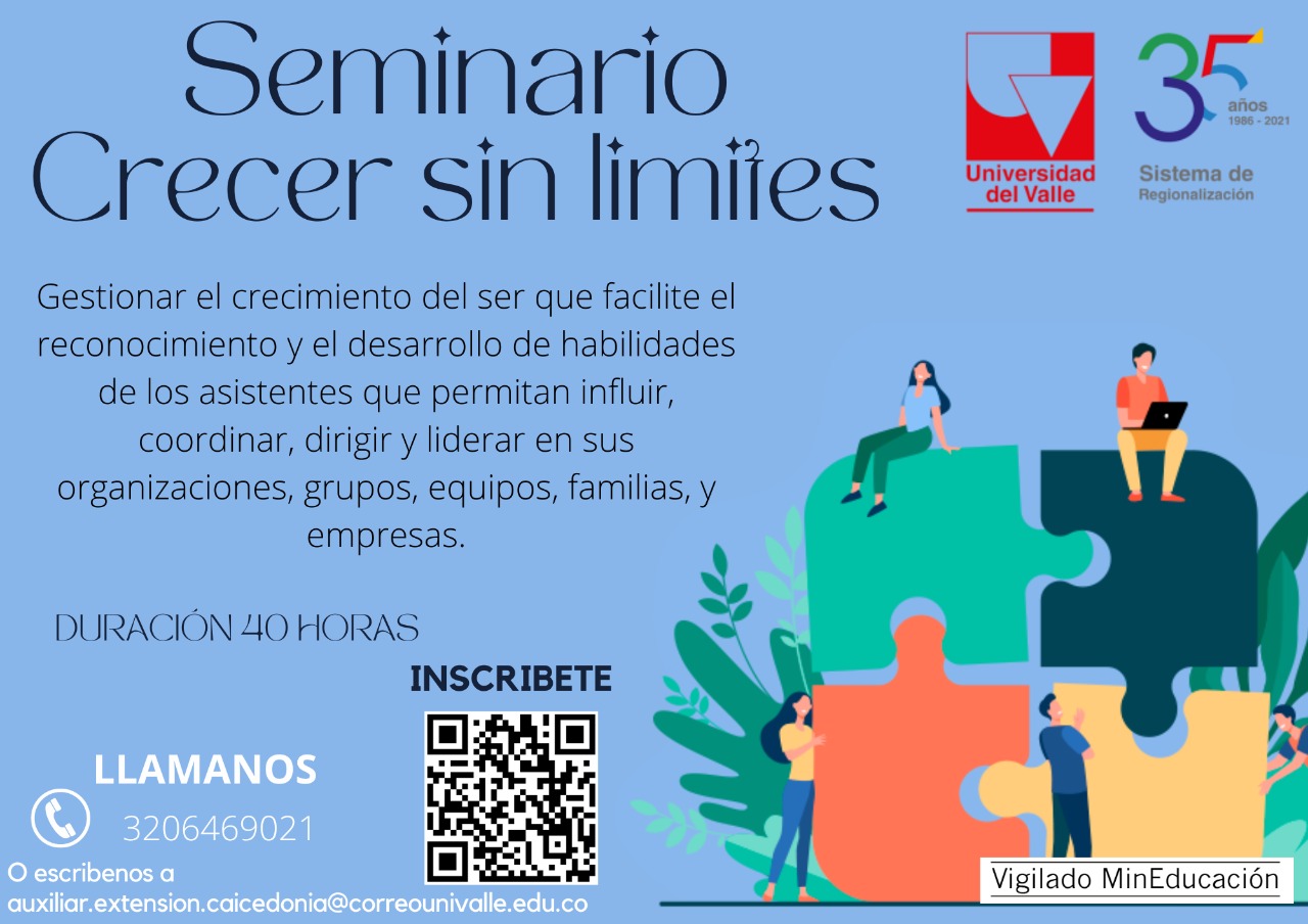SEMINARIO CRECER SIN LÍMITES: Gestionar el crecimiento del ser que facilite el reconocimiento y el desarrollo de habilidades de los asistentes que permitan influir, coordinar, dirigir y liderar en sus organizaciones, grupos, equipos, familias y empresas.